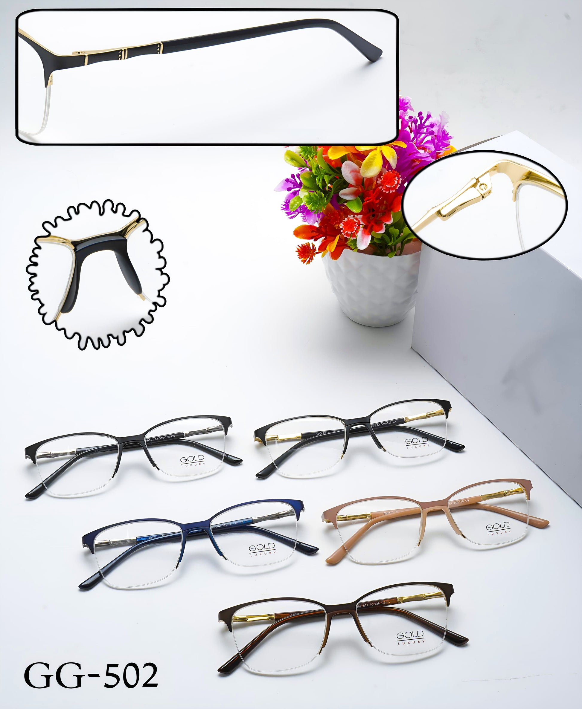 • Fixed Nose Pads: Sleek, low-maintenance design with a clean silhouette — ideal for everyday wear.
